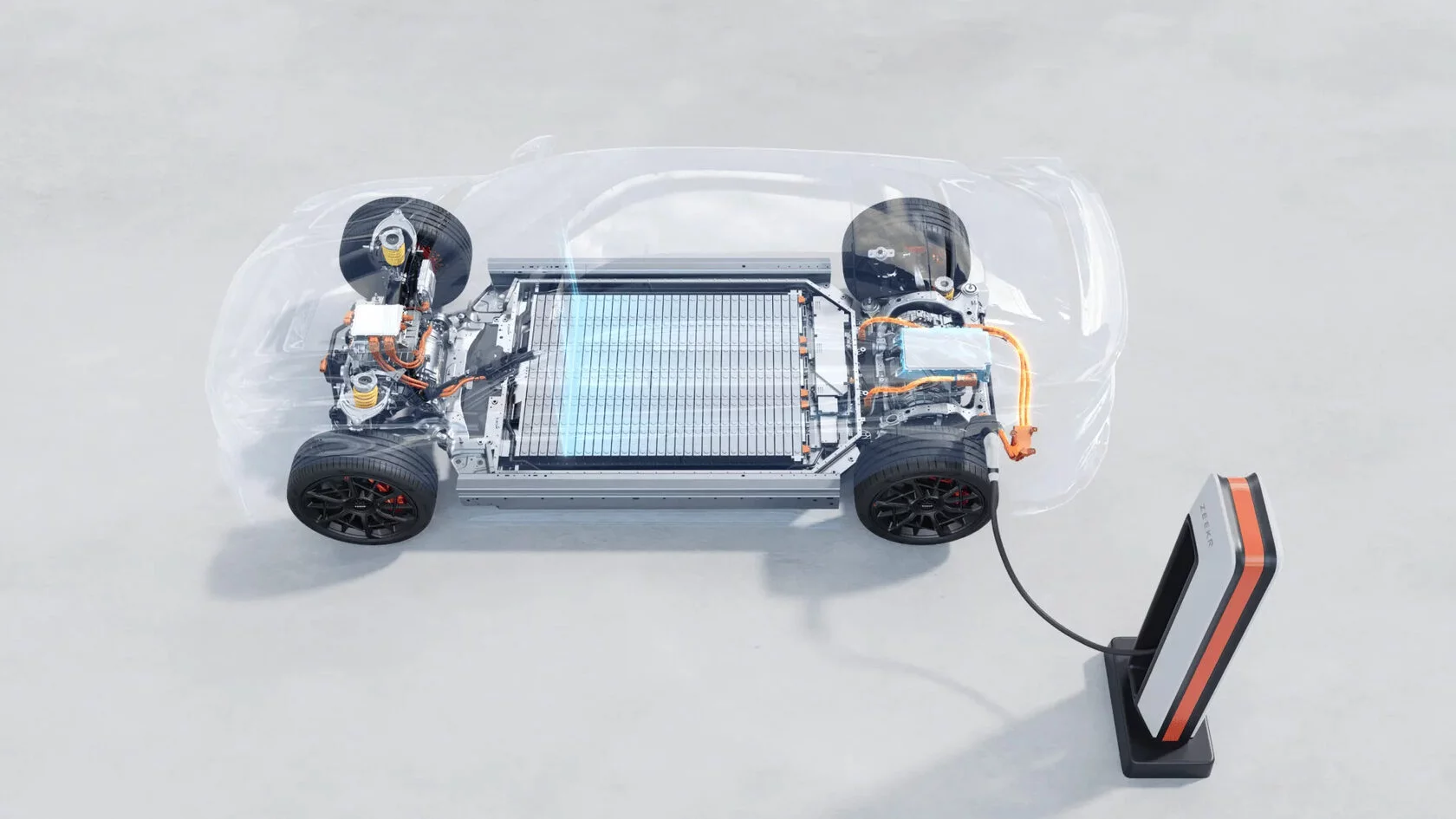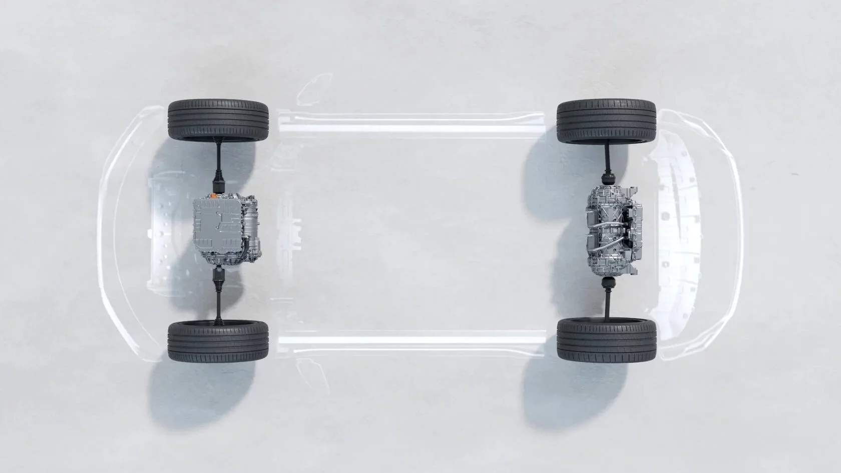 Ротор заднего двигателя покрыт углеродным волокном имеет максимальную скорость вращения 20 620 об/мин